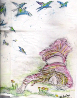 Os desenhos foram feitos "depois de uns 6 ou 7 meses de tratamento. Houve um intervalo de 1 mês entre eles, e fazia quase 2 anos que eu tentava desenh...